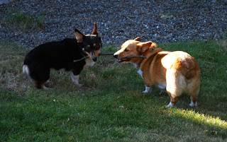 While we were there, along comes Oscar! Oscar is an 11 year old corgi and a very sweet boy. He's not in to playing as much as Baxter though, so we had to keep them separated. I didn't want to give Oscar a heart attack!